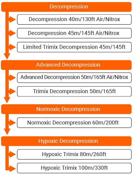A helium-light decompression program introducing efficient gas planning, safe ascents, and the discipline needed to progress deeper.